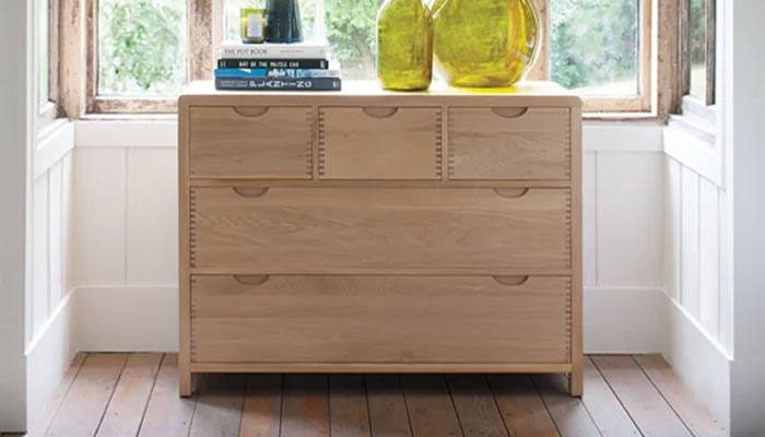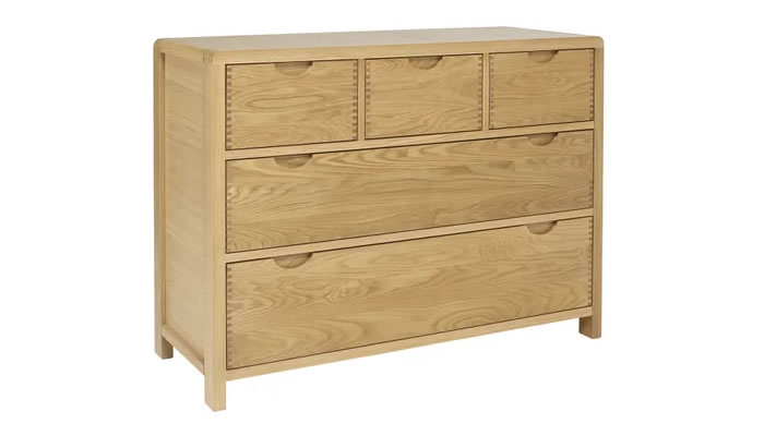 Ercol Bosco 5 Drawer Wide Chest The ercol Bosco bedroom chest of drawers provides plenty of useful storage with its five deep drawers. This cabinet features the curved finger joints.