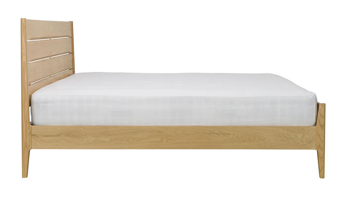Ercol Rimini Super King Bedstead The ercol Rimini Superking contemporary bed is constructed in smooth pale oak, featuring a understated chamfered planked headboard.