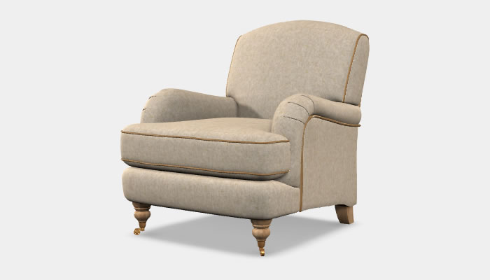 Wood Bros Langton Armchair The Wood Bros Langton armchair is a delightful chair which features a traditional English roll arm shape and a relaxed and comfortable sit. Available in an extensive range of beautiful fabrics, optional soft leather custom piping trim and legs in a selection of wood finishes.