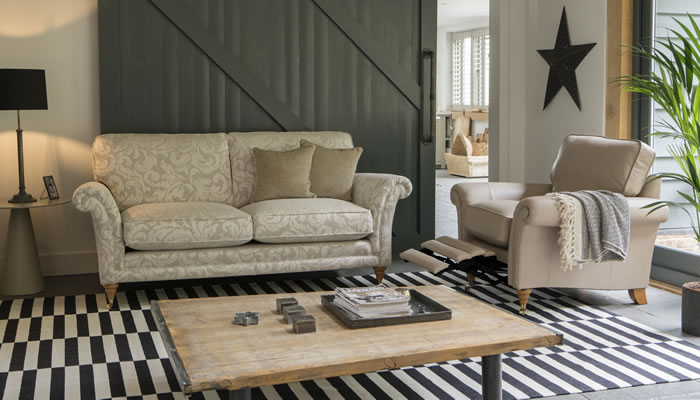 Parker Knoll Burghley Armchair with Powered Footrest The Parker Knoll Burghley Armchair with powered footrest features a stylish scroll arm, beautifully tailored back cushion and a large selection of luxury fabrics to choose from.