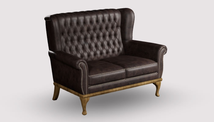 Wood Bros Watton Leather Compact 2 Seater Sofa The Wood Bros Watton two seater compact sofa features scroll arms, cabriole legs and a supportive super comfy sit. Available in a range of quality leathers, optional soft leather custom piping and button trim and legs in a selection of wood finishes.