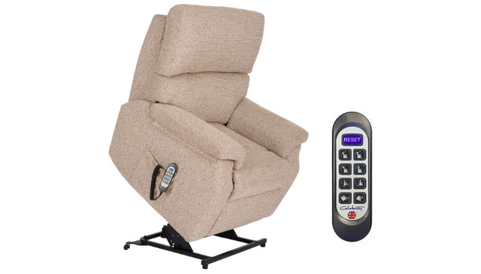 Celebrity Furniture Newstead Dual Motor Riser Recliner Headrest This Celebrity Furniture Newstead dual motor riser recliner with adjustable headrest has contemporary design with superb comfort. Choose from caster or glide feet and any of Celebrity Furniture fabrics.