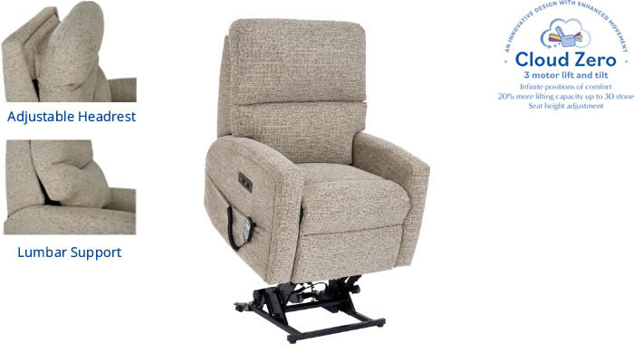 Celebrity Furniture Southwell Cloud Zero Riser Recliner with Headrest & Lumbar The Celebrity Furniture Southwell cloud zero riser recliner with headrest & lumbar support features stylish sweeping arms and an outer panel designed for both comfort and style. Available in a variety of beautiful Celebrity Furniture fabrics and a choice of caster or glide feet.
