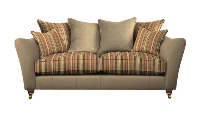 Parker Knoll Harriet Large 2 Seater Pillow Back Mix The Parker Knoll Harriet large pillow back two seater sofa is a classic statement piece with a gentle flowing shape, pleated arms and a curvaceous back. Choose from a large selection of stunning soft touch fabrics, fine leathers and leg wood finishes. Outer Leather includes body leather, Inner Fabric includes 4 x pillows plus 2 x seat cushions and Pillow Fabric includes 2 pillows.
