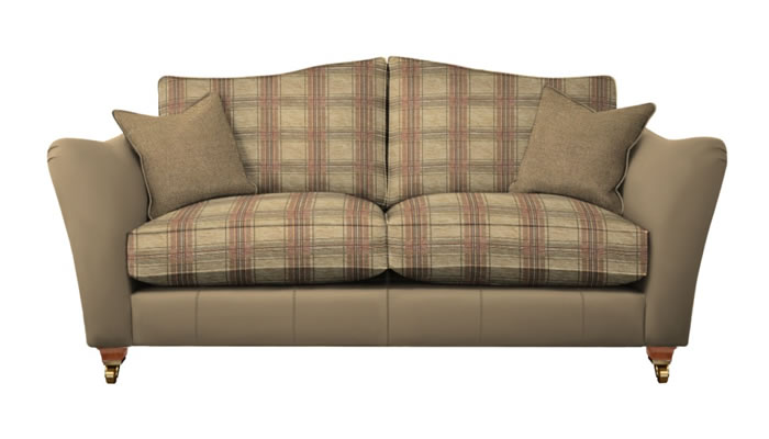 Parker Knoll Harriet Large 2 Seater Sofa Mix The Parker Knoll Harriet leather fabric mix large two seater sofa with two scatters is a timeless statement piece with a gentle flowing shape, pleated arms and a curvaceous back. Choose from a large selection of stunning soft touch fabrics, exquisite leathers and leg wood finishes.