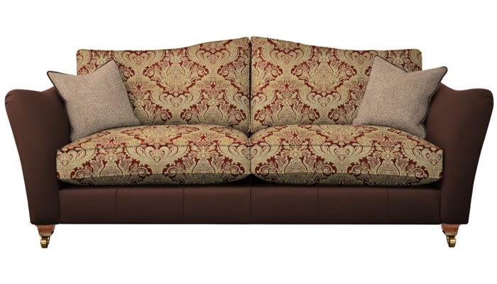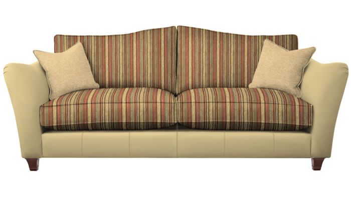 Parker Knoll Harriet Grand Sofa Mix The Parker Knoll Harriet leather fabric mix grand sofa with two scatters is a classic statement piece with a gentle flowing shape, pleated arms and a curvaceous back. Choose from a large selection of stunning soft touch fabrics, stunning leathers and leg wood finishes.