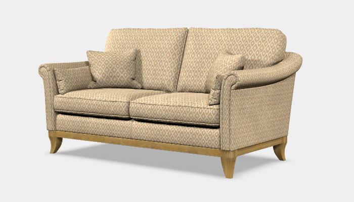 Wood Bros Weybourne Medium 3 Seater Sofa The Wood Bros Weybourne three seater medium sofa features a tailored design, scroll arms and a wooden plinth. Available in an extensive range of beautiful fabrics, optional soft leather custom piping trim and legs in a selection of wood finishes.