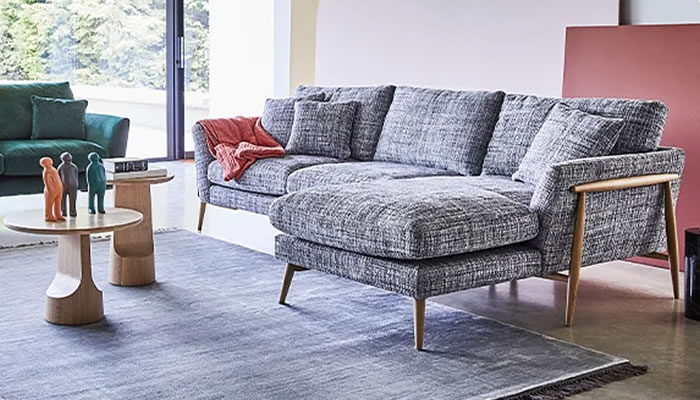Ercol Forli Corner Chaise The ercol Forli Corner Chaise has a modern design with generous comfortable cushions. Available in a variety of fabrics from ercol Edit Collection, two reversible scatter cushions and the sold oak legs in a choice of finishes.