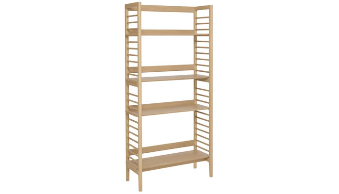 Ercol Ballatta Shelving Unit The ercol Ballatta shelving unit made from solid oak and oak veneers has a timeless design with slim, turned uprights and it is designed to fit in smaller spaces.