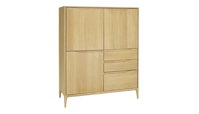 Ercol Romana Highboard The ercol Romana highboard is constructed using solid oak and finished in a clear matt lacquer to protect and show the beauty of the natural timber.