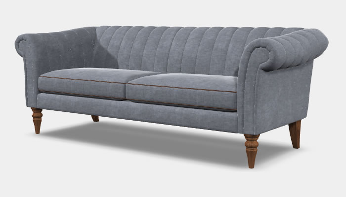 Wood Bros Rushden Large Sofa The Wood Bros Rushden four seater large sofa features a low back with striking channels and turned legs. Available in an extensive range of beautiful fabrics, optional soft leather custom piping trim and legs in a selection of wood finishes.