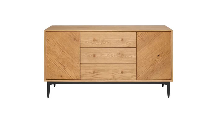 Ercol Monza Large Sideboard The ercol Monza large sideboard is both functional and stylish. The stunning feature herringbone veneer oak pattern is displayed to its best advantage on the doors and drawers.