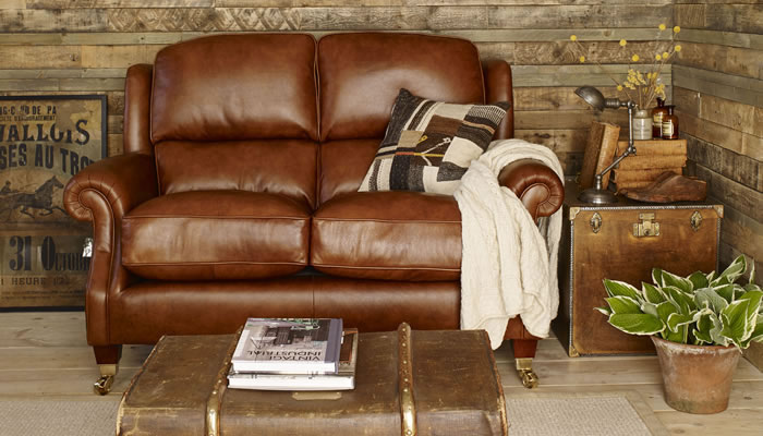 The Parker Knoll Henley leather two seater sofa with two scatters features high back and classic detailing, serpertine springs and elasticated webbed back support.