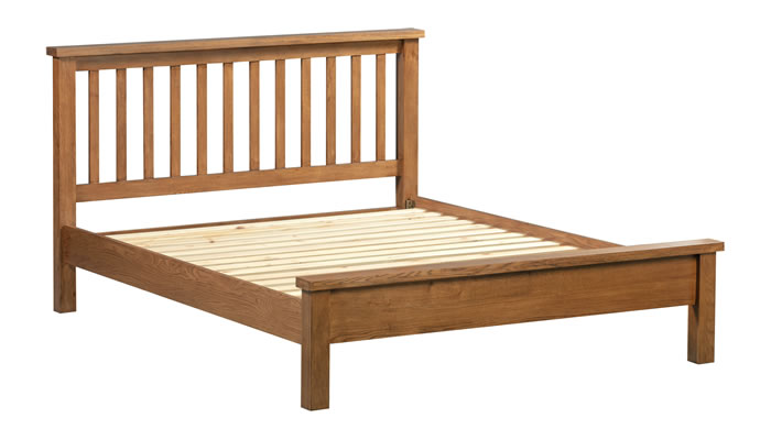 Dorridge Rustic Oak Bedroom King Size Bed This Dorridge King-size 5' bed features a wooden slatted headboard and a clean wooden frame finished in a protective dark rustic lacquer.