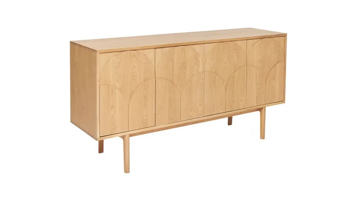 Ercol Amalfi Sideboard The ercol Amalfi sideboard is full of tactile detail, art deco influenced layered arches decorate each of the four doors.