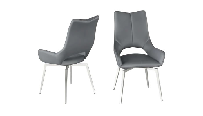 Chair Collection Spinello Swivel Dining Chair This Torelli Spinello Dining Chair in Taupe is modern design, sleek and streamlined in appearance. It features swivel auto start mechanism, dense bounce back cushioned faux leather seat pad, spider leg frame and brushed stainless steel legs. Available in White, Taupe and Grey.