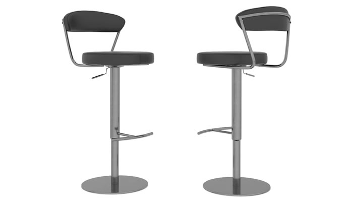 Bar Stool Collection Gino Bar Stool This Torelli Gino Bar Stool in taupe is ultra modern design, sleek and streamlined in appearance. It features dense bounce back cushioned faux leather seat pad, solid brushed stainless steel pedestal leg, heavy brushed stainless steel base plate, stylish footrest and gas lift. Available in Black, Taupe & Grey.