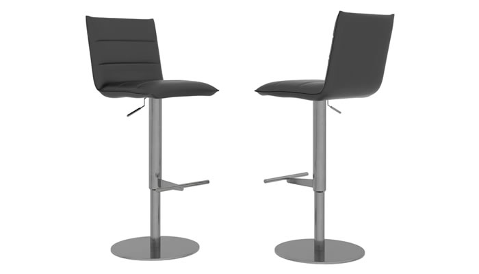 Bar Stool Collection Riva Bar Stool This Torelli Riva Bar Stool in black is ultra modern design, sleek and streamlined in appearance. It features dense bounce back cushioned faux leather seat pad, solid brushed stainless steel pedestal leg, heavy brushed stainless steel base plate, stylish footrest and gas lift. Available in Black, Taupe & Grey.