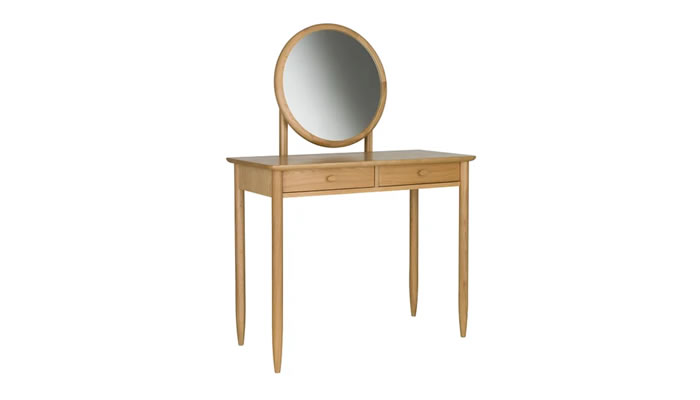 Ercol Teramo Dressing Table The ercol Teramo dressing table and mirror are a statement addition to the Teramo bedroom range. Made from solid oak, oak veneers and birch, it is finished in clear matt lacquer providing protection.