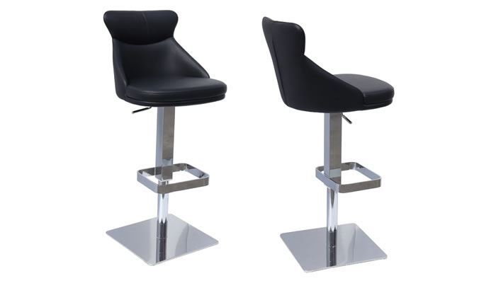 Bar Stool Collection Sergio Bar Stool This Torelli Sergio Bar Stool in grey is ultra modern design, sleek and streamlined in appearance. It features dense bounce back cushioned faux leather seat pad, solid brushed stainless steel pedestal leg, heavy brushed stainless steel base plate, stylish footrest and gas lift. Available in Black, Taupe & Grey.