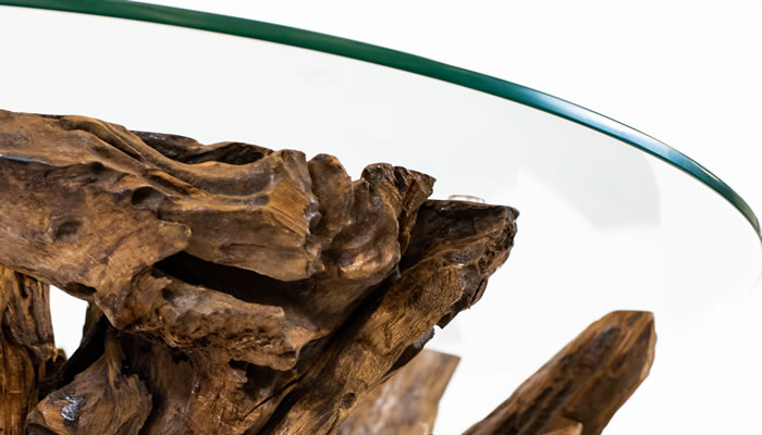 Wild Root Round Coffee Table The Wild Root round coffee table, a standout from our Signature Collection, is expertly handcrafted from teak roots and tempered glass tops. Each piece is distinct, filled with character, and has its own story to share. This collection of timeless furniture is built to last for generations.