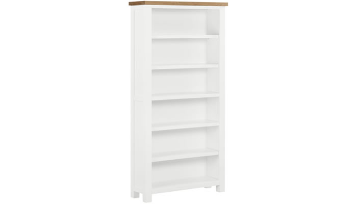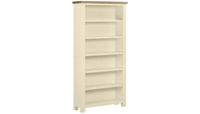 Digbeth Painted Tall Wide Bookcase The Signature Collection Digbeth painted tall wide bookcase combines a smooth painted finish with a natural oak top that offers generous storage. Crafted from White Oak, pine and MDF. Available in Ivory, White and Moon Grey.