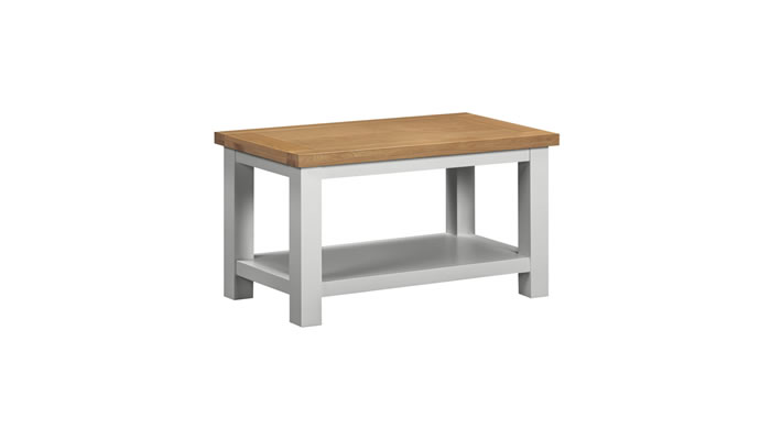 Digbeth Painted Small Coffee Table The Signature Collection Digbeth painted small coffee table combines a smooth painted finish with a natural oak top making it a stylish centrepiece for your living room. Clean straight lines with stylish panels are crafted from white oak, pine and MDF. Available in Ivory, White and Moon Grey.