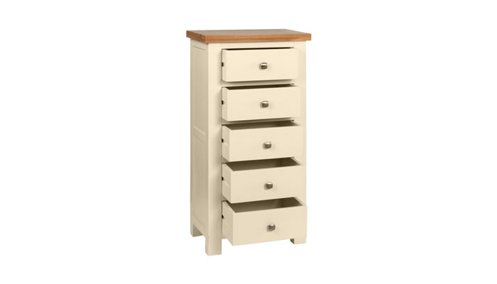 Signature Collection Digbeth Painted Bedroom 5 Drawer Tall Chest This 5 drawer tall chest maximises storage by utilising height whilst minimising floor space. Available in Ivory and premium colours Moon Grey or White.