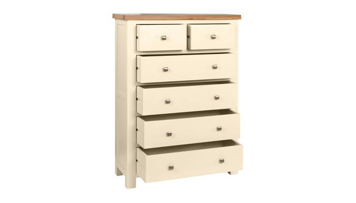 Signature Collection Digbeth Painted Bedroom 2 Over 4 Chest This tall 2 over 4 chest offers a clean and modern design with 4 perfectly proportioned large drawers and 2 small drawers. Available in Ivory and premium colours Moon Grey or White.