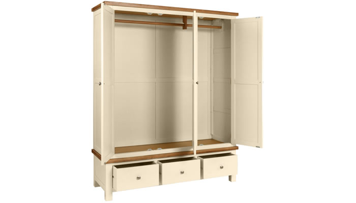 Signature Collection Digbeth Painted Bedroom Triple Wardrobe 3 Drawers This triple wardrobe has a double and single hanging space with 3 deep drawers for additional storage. Available in Ivory and premium colours Moon Grey or White.
