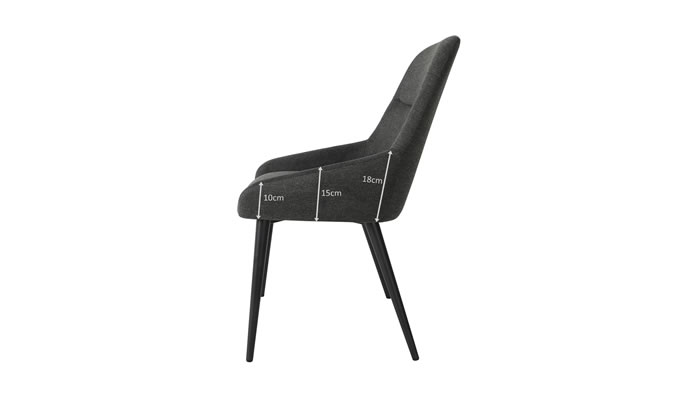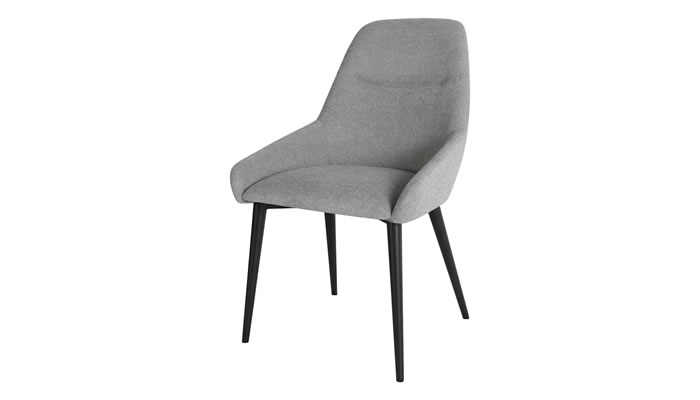 Trent Chairs Dining Chair The Trent chairs from our Signature Collection have a subtle textured pattern within the soft-touch matt chenille fabric. The shape of the chair is designed to offer lumbar support and add a modern look to your home. Available in light or dark grey with black powder coated legs.