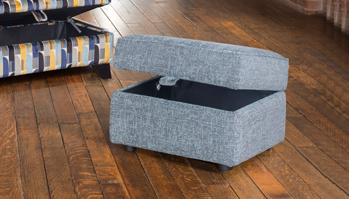 Alstons Emelia Storage Footstool The Alstons Emelia storage stool is a simple uncomplicated design without compromise on style or quality for price. Available in a selection of fantastic fabrics that include the latest colour trends.
