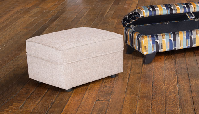 Alstons Emelia Footstool The Alstons Emelia foot stool is a simple uncomplicated design without compromise on style or quality for price. Available in a selection of fantastic fabrics that include the latest colour trends.