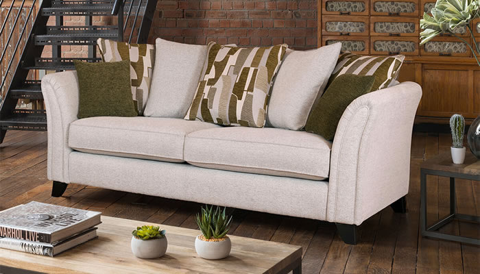 Alstons Emelia Grand Sofa Pillow Back The Alstons Emelia pillow back grand sofa is a simple uncomplicated design without compromise on style or quality for price. Available in a selection of fantastic fabrics that include the latest colour trends and a choice of two leg finishes to match your personal decor.