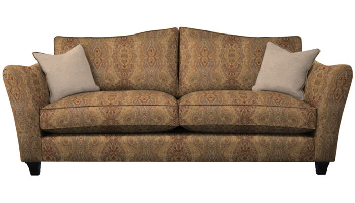 Parker Knoll Harriet Grand Sofa The Parker Knoll Harriet grand sofa with two scatters is a classical statement piece with a gentle flowing shape, pleated arms and a curvaceous back. Choose from a large selection of stunning soft touch fabrics and leg wood finishes.