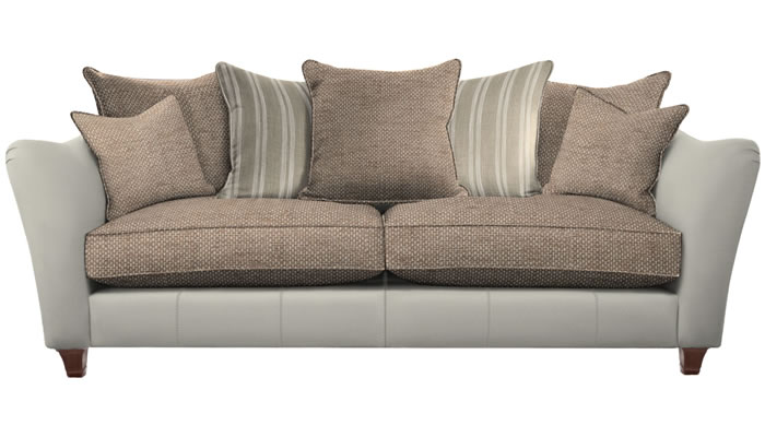 Parker Knoll Harriet Grand Sofa Pillow Back Mix The Parker Knoll Harriet pillow back grand sofa with is a timeless statement piece with a gentle flowing shape, pleated arms and a curvaceous back. Choose from a large selection of stunning soft touch fabrics, fine leathers and leg wood finishes. Outer Leather includes body leather, Inner Fabric includes 5 x pillows plus 2 x seat cushions and Pillow Fabric includes 2 pillows.