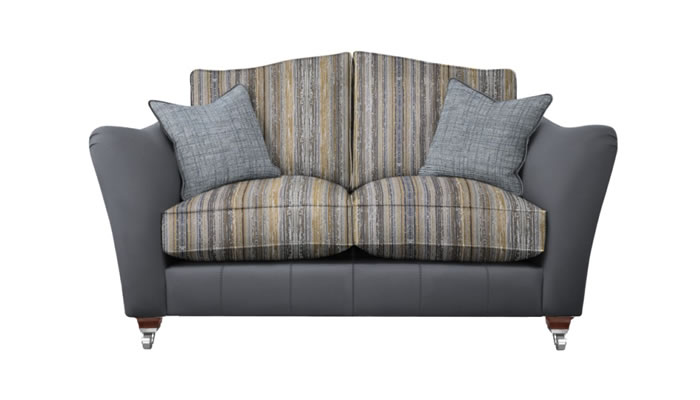 Parker Knoll Harriet 2 Seater Sofa Mix The Parker Knoll Harriet leather fabric mix two seater sofa with two scatters is a timeless statement piece with a gentle flowing shape, pleated arms and a curvaceous back. Choose from a large selection of stunning soft touch fabrics, stunning leathers and leg wood finishes.