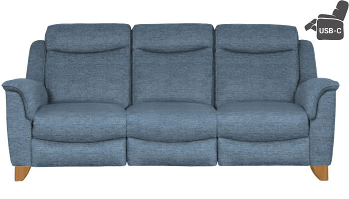 Parker Knoll Manhattan 3 Seater Power Double Recliner + USB-C The Manhattan three seater sofa with electric powered double recliners and USB-C charging port by Parker Knoll is a quintessential design with graceful sweeping lines, a high back for exceptional comfort, and generous cushioning. Choose from an extensive selection of soft-touch fabrics and select either Mahogany or Teak legs.