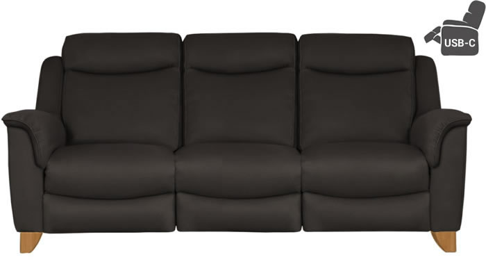 Parker Knoll Manhattan 3 Seater Power Double Recliner + USB-C The Manhattan leather three seater sofa with electric powered double recliners and USB-C charging port by Parker Knoll is a quintessential design with graceful sweeping lines, a high back for exceptional comfort, and generous cushioning. Choose from an extensive selection of fine leathers and select either Mahogany or Teak legs.