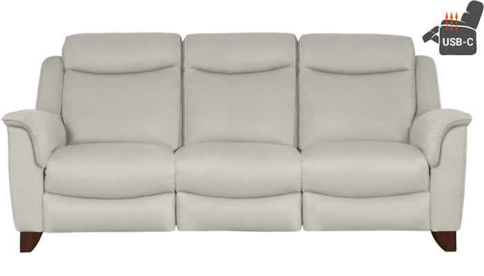 Parker Knoll Manhattan 3 Seater Power Double Recliner + Heated Seats + USB-C The Parker Knoll Manhattan leather three seater sofa with electric powered double recliners, heated seats and USB-C charging port showcases a timeless design characterized by its smooth, flowing lines, a high back for ultimate comfort, and plush cushioning. Choose from an extensive selection of fine leathers and select either Mahogany or Teak legs.