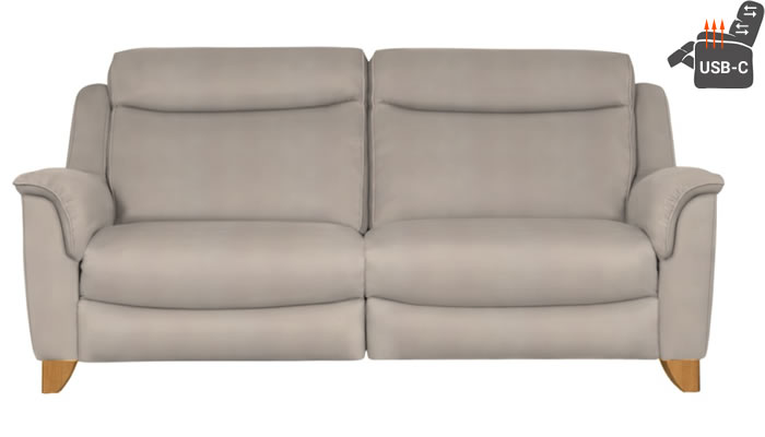 Parker Knoll Manhattan Large 2 Seater Power Plus Double Recliner + Headrest + Lumbar + Heated Seats + USB-C The Manhattan leather Power Plus large two seater sofa with electric powered double recliners, adjustable headrests, lumbar support, heated seats and USB-C charging port by Parker Knoll, is a quintessential design with graceful sweeping lines, a high back for exceptional comfort. Choose from an extensive selection of fine leathers and select either Mahogany or Teak legs.