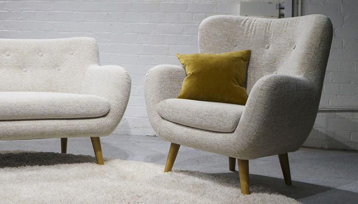 Sarah Fabric Sarah Highback Chair The Sarah Highback Chair has reversible buttoned back and seat cushions in a selection of modern and exciting fabric options with feet available in beech or dark stain.