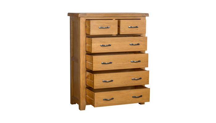 Southam Bedroom 4 + 2 Chest The Signature Collection Southam 4 + 2 Chest is made from white oak, chunky top with softened corners, tapered legs, dovetailed drawers and supplied with a rustic pull handle.