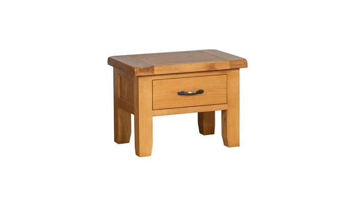 Southam Bedroom Side Table With Drawer The Signature Collection Southam Side Table With Drawer is made from white oak, chunky top with softened corners, tapered legs, dovetailed drawers and supplied with a rustic pull handle.