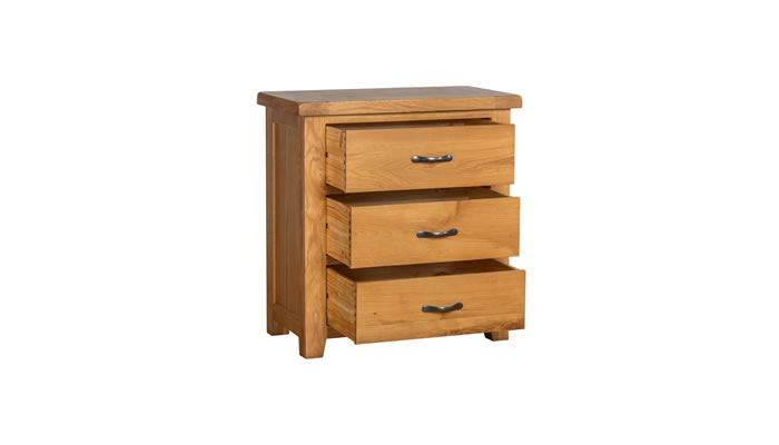 Southam Bedroom 3 Drawer Chest The Signature Collection Southam 3 Drawer Chest is made from white oak, chunky top with softened corners, tapered legs, dovetailed drawers and supplied with a rustic pull handle.