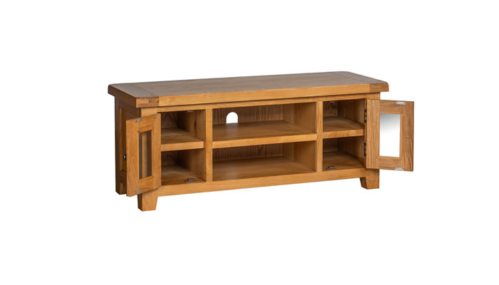 Southam Large TV Unit The Signature Collection Southam Large TV Unit is made from white oak, chunky top with softened corners, tapered legs and finished in a modern attractive wax.
