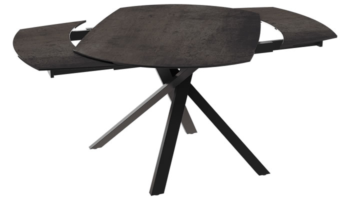 Kairo Dining Table The Signature Collection Kairo table is available in 13 different tops, each bonded on tempered glass making the table extremely resistant. The synchronised mechanism allows you to rotate the central plate to make the two extensions fold out.